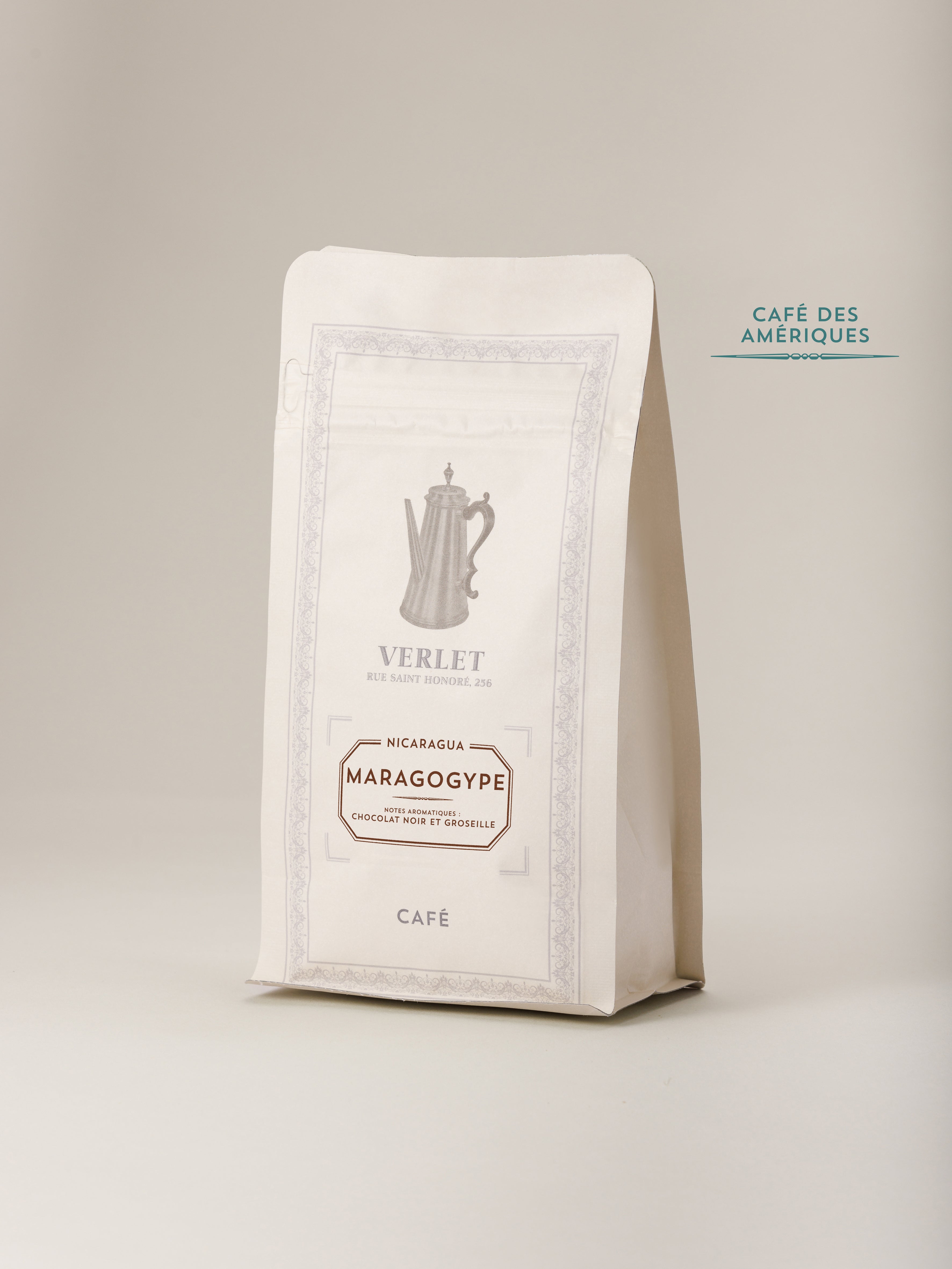 Le Maragogype, aussi appelé "éléphant bean", est une variété d’Arabica remarquable par la taille exceptionnelle de ses grains, supérieurs au crible 20. Ce café rare séduit autant par sa rareté que par son intensité aromatique. Originaire des terres volcaniques du Nicaragua, ce café est issu d’une culture rigoureusement sélectionnée, pour une tasse unique, au profil riche et équilibré. Un café d’exception destiné aux amateurs de crus rares.
