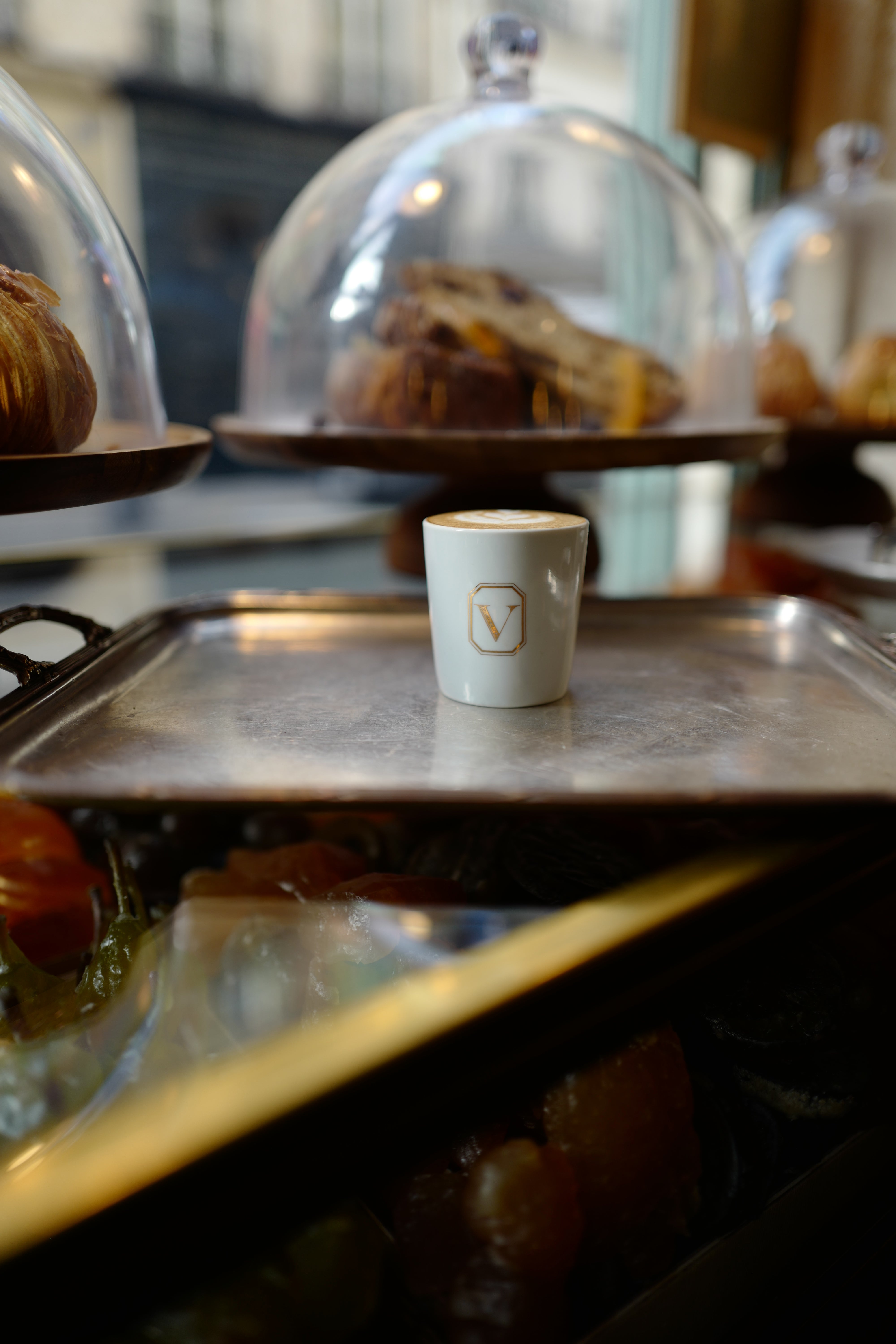 Notre timbale en porcelaine, inspirée des anciens contenants utilisés autrefois pour déguster le café et le chocolat chaud, rend hommage aux rituels historiques des cafés parisiens. Son design épuré est sublimé par le monogramme doré Verlet, signature emblématique de la maison.
